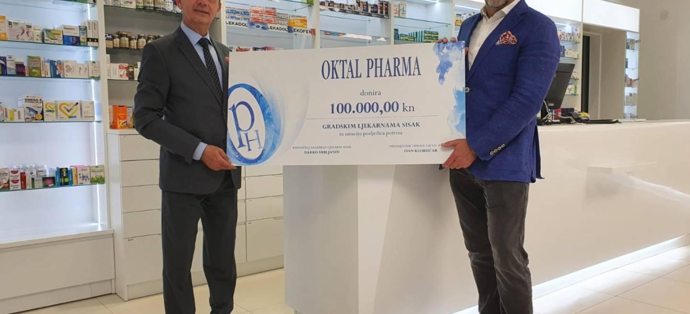 S ciljem pružanja pomoći u saniranju posljedica potresa i obnovi potresom oštećenih ljekarničkih jedinica, Oktal Pharma je donirala novčana sredstva u iznosu od 100.000 kuna Gradskim ljekarnama Sisak