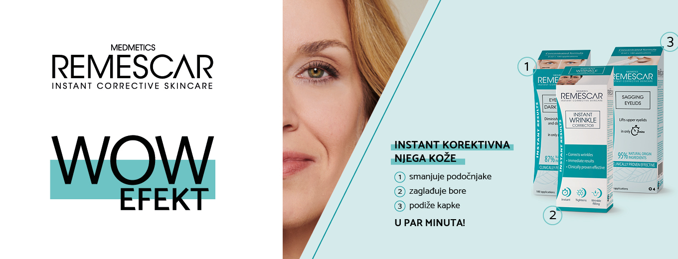 Remescar je linija proizvoda za korektivnu njegu kože - smanjuju podočnjake i bore, podižu opuštene kapke.